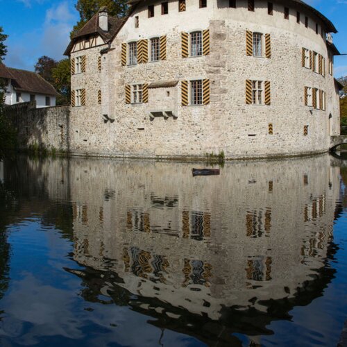 The original building dates back to the 14th century. Once twice as large as it is today, it served the von Hallwyl family as a palas (a residential building within the castle) until the 15th century. The building was burnt down when Bernese troops conquered the Aargau in 1415. It was rebuilt as a storehouse (granary) in 1520.